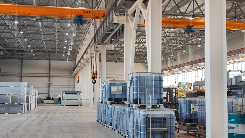 На предприятии установлено современное оборудование, запущена автоматическая производственная линия непрерывного цикла. Отгрузка продукции будет осуществляться непосредственно с производственной площадки; для еврофур предусмотрены удобные подъездные пути.